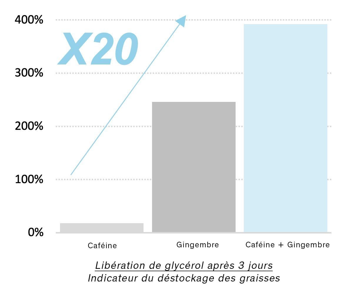 Η τελευταία επανάσταση στη αδυνάτισμα: ο συνδυασμός της Καφεΐνης, χαρακτηριστικό συστατικό αδυνατίσματος, με το Τζίντζερ το οποίο δρα ως "διακόπτης" ο οποίος ενεργοποιεί τη διαδικασία της λιπόλυσης.