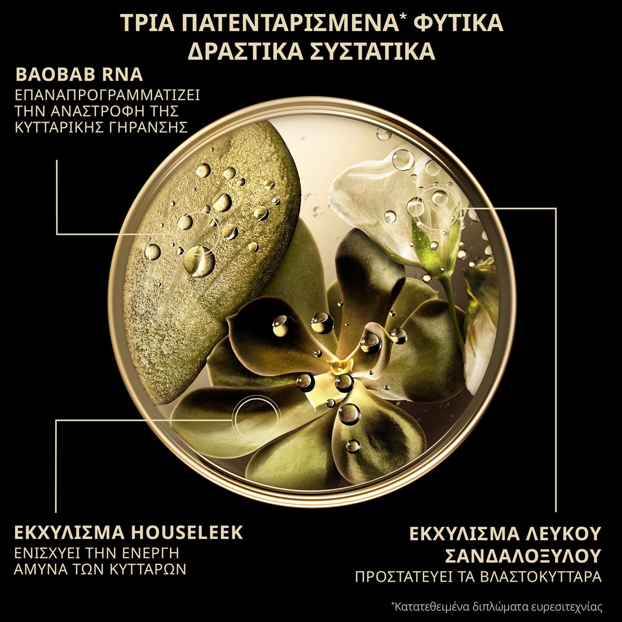 Μετά από 10 χρόνια έρευνας, τα Εργαστήρια της Lierac ανέπτυξαν ένα μοναδικό τρίο πατενταρισμένων* φυτικών δραστικών συστατικών που ενεργοποιούν τις πρωτεΐνες-αγγελιοφόρους της κυτταρικής μακροζωίας** για να διορθώσουν όλα τα σημάδια της γήρανσης: